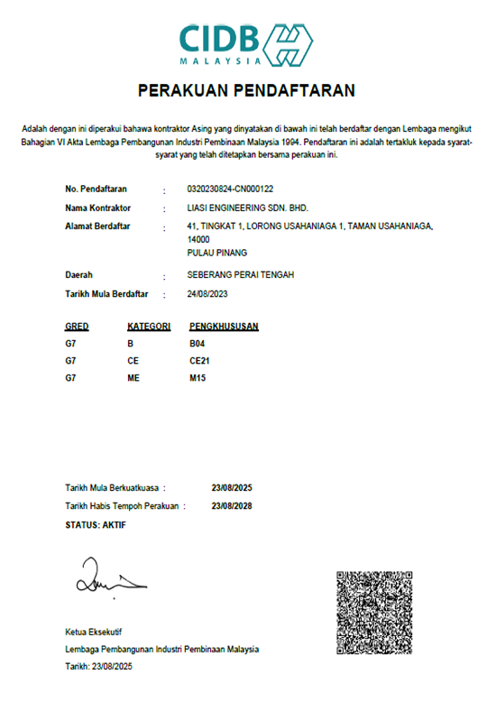 • 馬來西業(yè)CIDB證書
